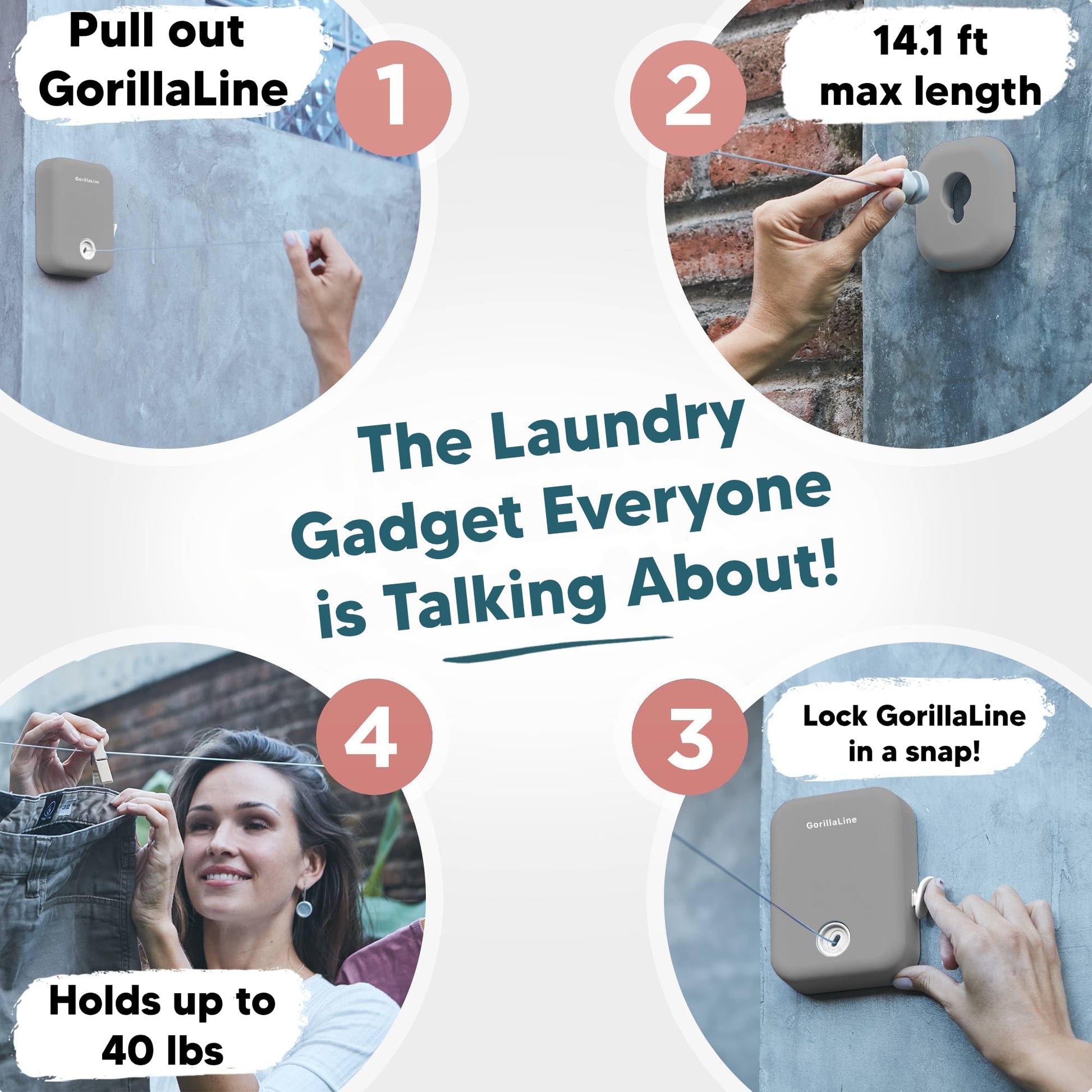 Retractable Clothesline Indoor Outdoor - GorillaLine Gray